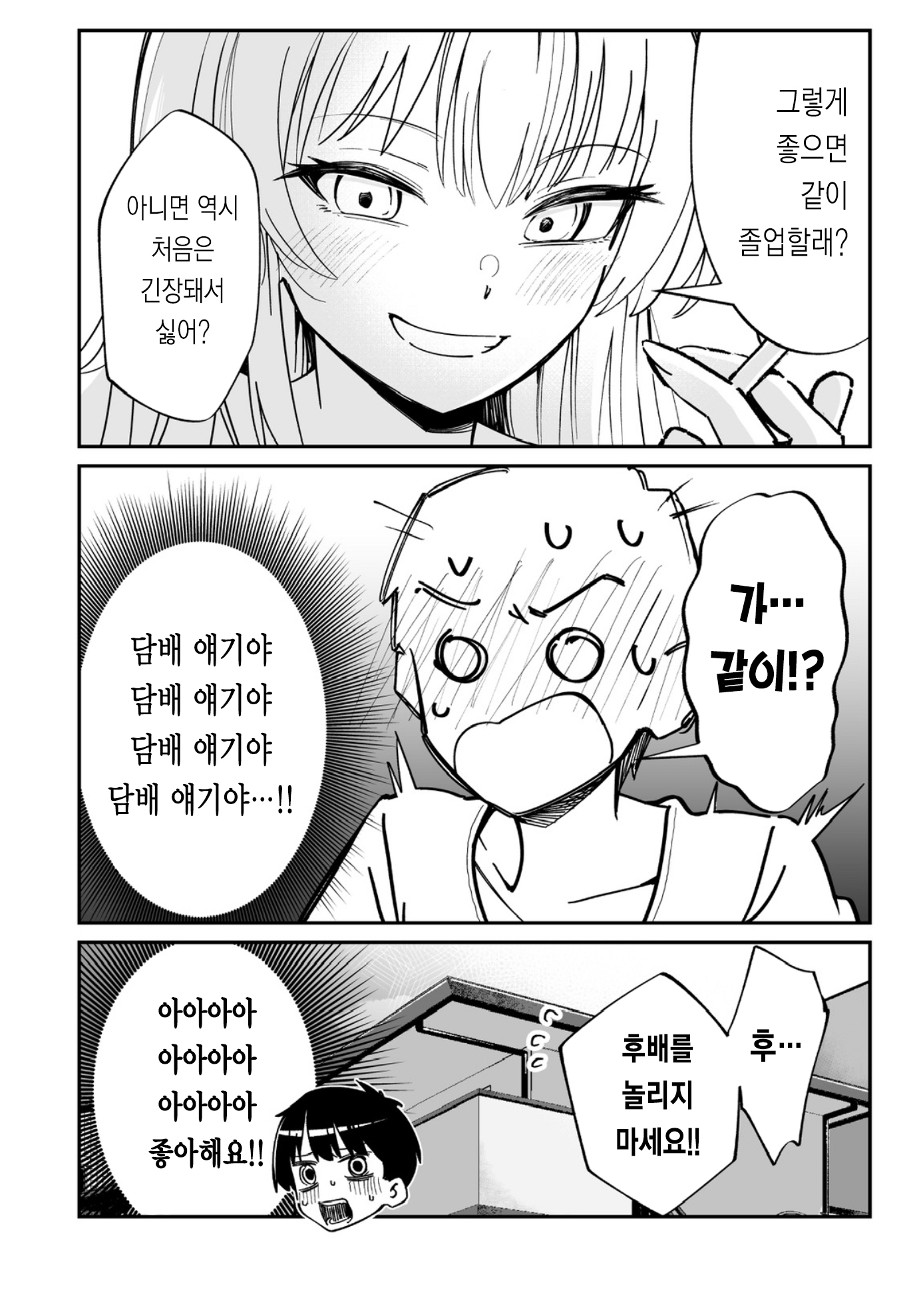 기타 꼴초선배 nandate 2025. 7. 10. 반응형 보소 반응형 공유하기 게시글 관리 nandate '기타' 카테고리의 다른 글 잡탕 만화 (1) 2025.07.31 큐피트의 첫사랑 (0) 2025.07.19 여초딩식 카운셀링 (1) 2025.06.28 눈치없는 남자 (0) 2025.06.13 자고 일어났더니 가족이 개가 되었다 (0) 2025.06.05 '기타' 관련글 잡탕 만화 큐피트의 첫사랑 여초딩식 카운셀링 눈치없는 남자