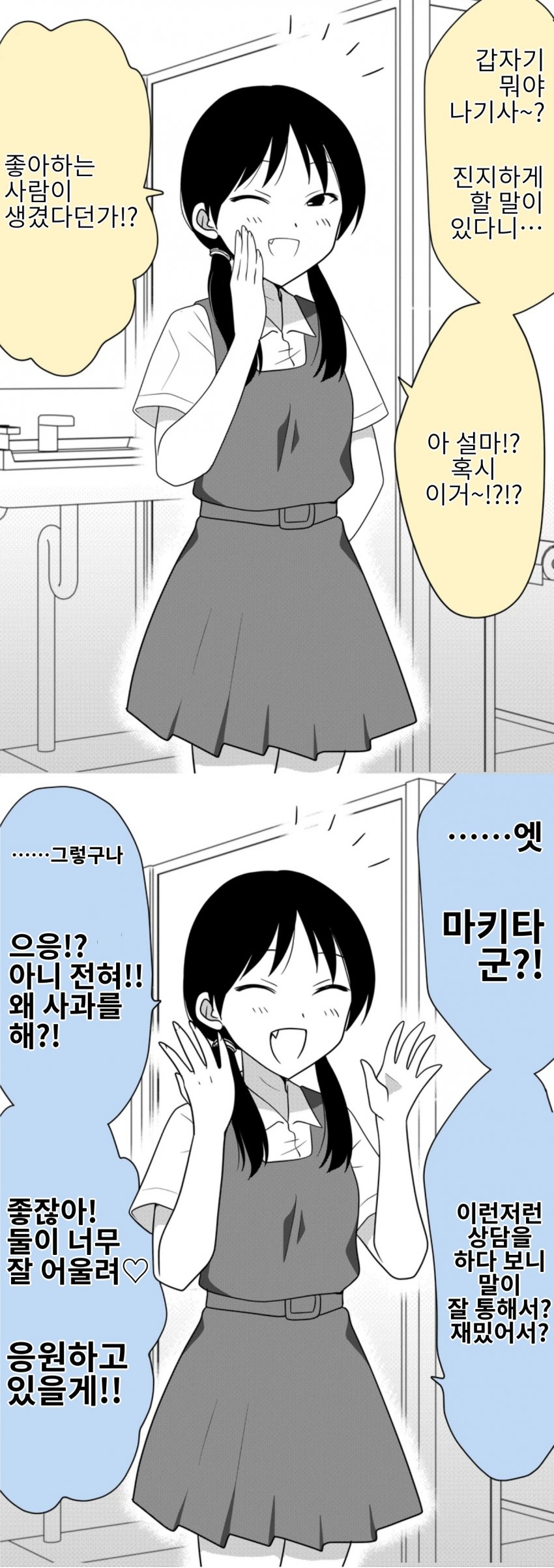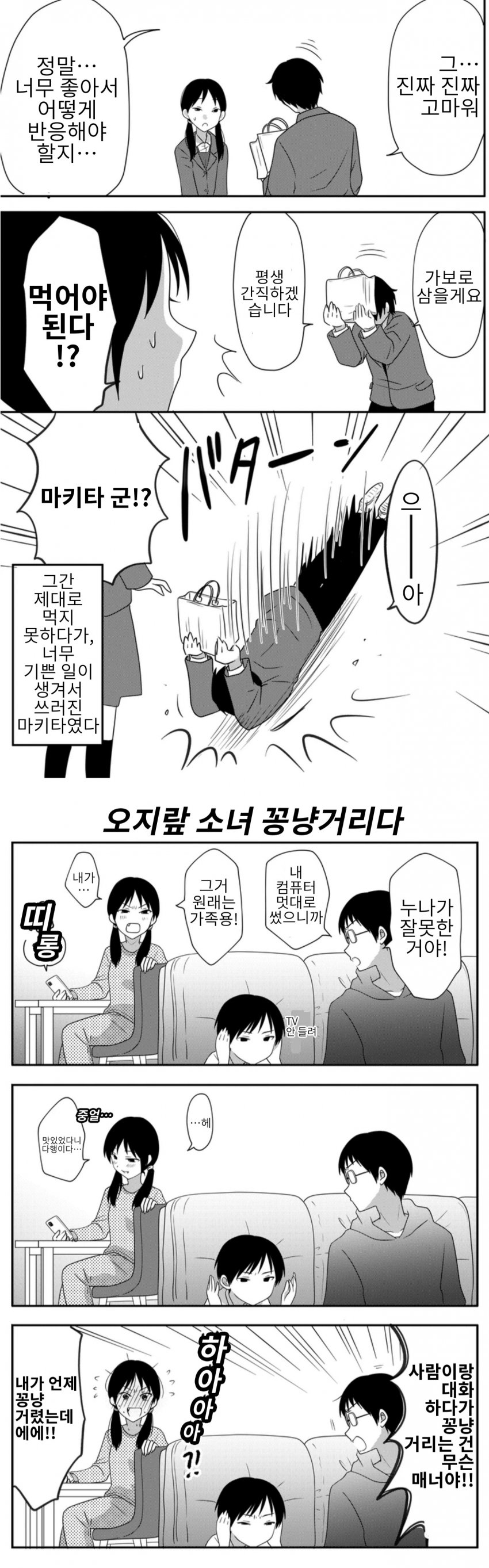 기타 오지랖이 넓은 여자아이 1~4 nandate 2025. 8. 15. 반응형 개추 반응형 공유하기 게시글 관리 nandate '기타' 카테고리의 다른 글 만붕군 스페셜 (0) 2025.09.09 만붕이와 고양이 (0) 2025.08.22 오랜만에 만난 전여친이 영매가 되있었다 (0) 2025.08.05 잡탕 만화 (1) 2025.07.31 큐피트의 첫사랑 (0) 2025.07.19 '기타' 관련글 만붕군 스페셜 만붕이와 고양이 오랜만에 만난 전여친이 영매가 되있었다 잡탕 만화